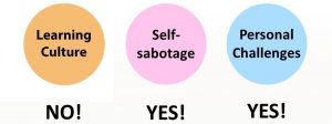 Self-sabotage – student success must begin with a personal commitment to succeed. This includes choosing to accept responsibility, take action, and seek solutions when facing any challenge, i.e., choose to act like a creator, which leads to success! The alternative is to choose to blame, complain, and make excuses, i.e., choose to self-sabotage, which leads to failure. The choice between being a creator or a self-saboteur is very important, and only creators can be committed to succeed. However, unaware of the importance of this choice, the majority of students easily flip between the two roles in different situations, while others habitually choose the self-saboteur role because this behavior has been modeled for them in their social circles, and even in their home environment. Moreover, intentionally changing from the self-saboteur to creator role may be very difficult for these students, and it may require counseling support.